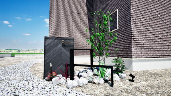 門柱部と植栽部に迫力をプラスしてくれるアイテムとなります。