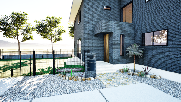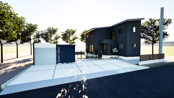 高級感を出しすぎず、色味は高級感のある濃い目のカラーを採用して引き締まったイメージのエクステリアとなりました。
