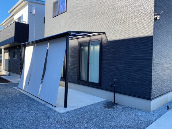 Y様邸を建築されたハウスメーカーさんは、施工写真があれば外壁保証に影響が無いとのことでしたので外壁固定のテラス屋根を使用させていただきました。