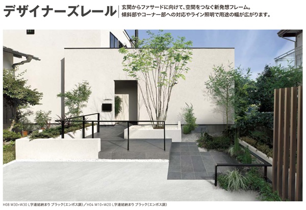 Y様からのご要望がありました「敷地に人や車が入らないようにしたい」ことを実現するために、上記写真のLIXIL デザイナーズレールを設置させていただきました。