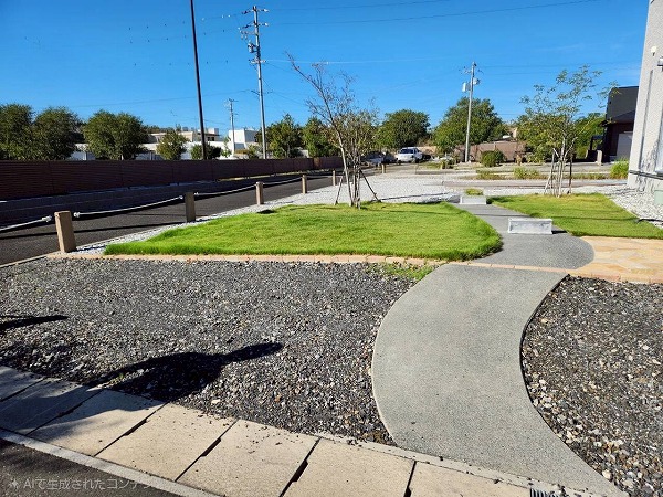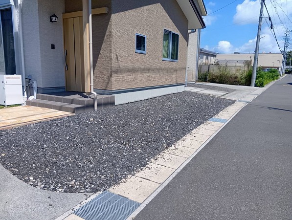 砂利で外構の雰囲気を損なうことなく、素敵なお庭に仕上がりました。