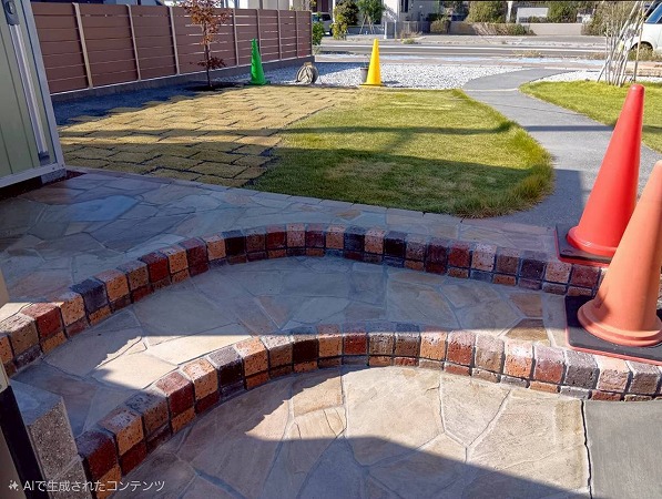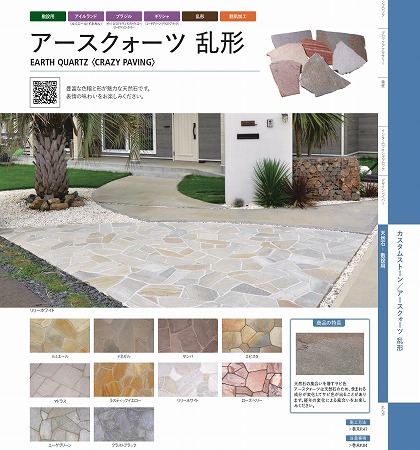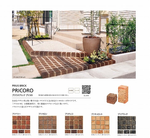 階段の蹴上に使用したレンガは、下記写真のTOYO工業ピンコロ プリコロ、自然石乱形は エスビック アースクオーツ です。